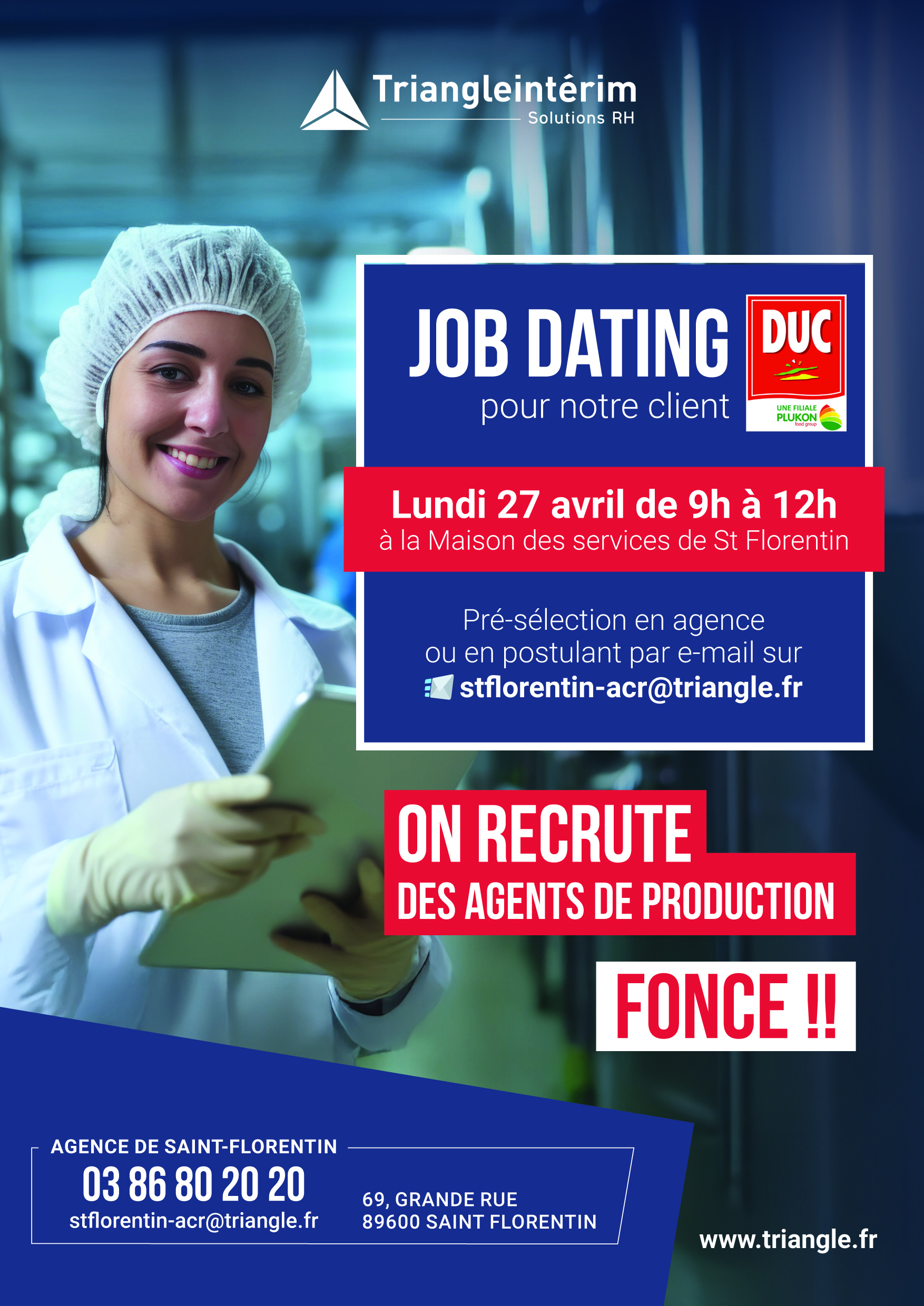 Nous organisons un Job Dating pour notre client Duc situé à Chailley.