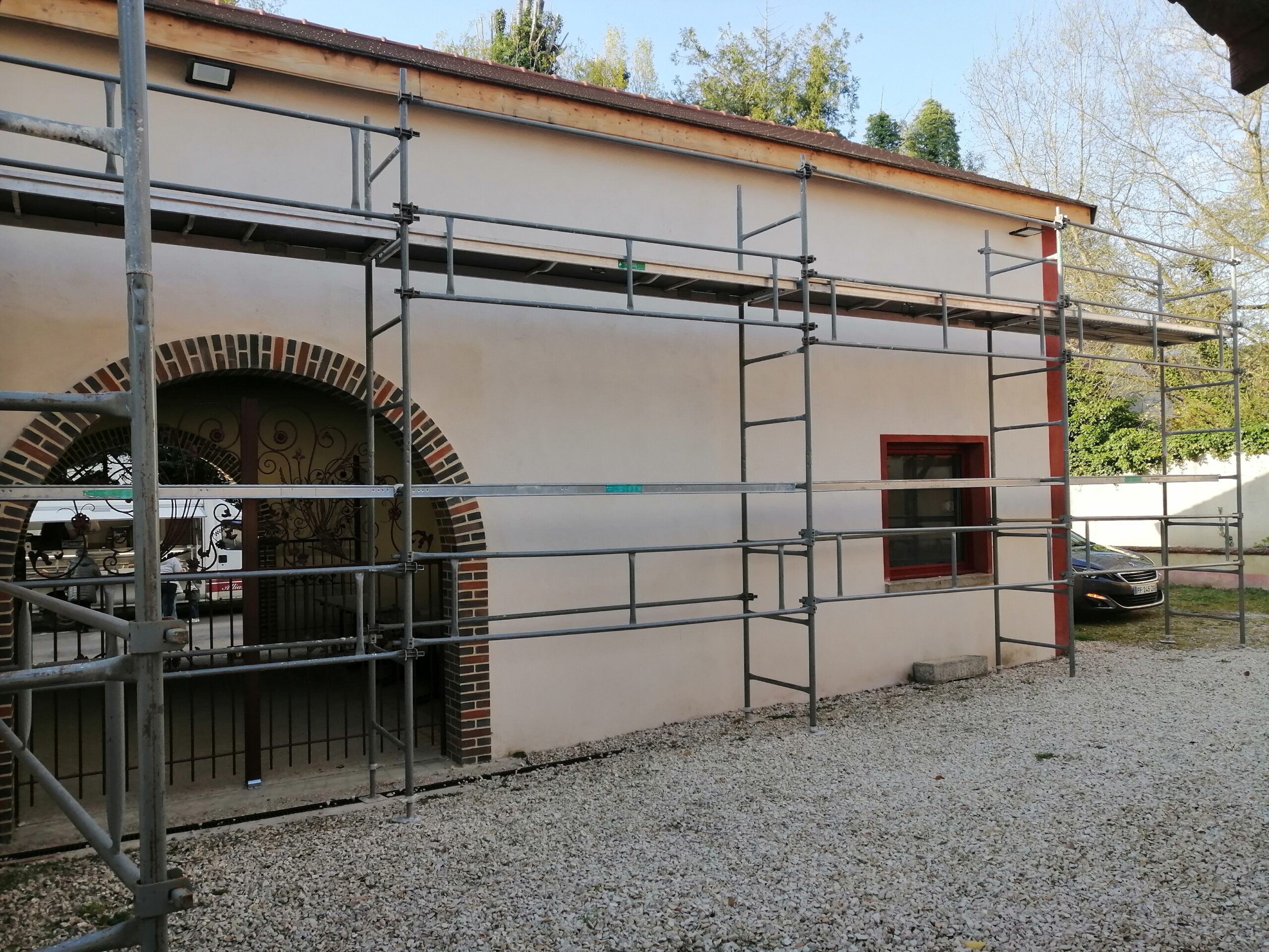 Pour apporter la touche finale (et indispensable!) au marché, Sébastien et MIckaël installent des gouttières sur l’ensemble du bâtiment.